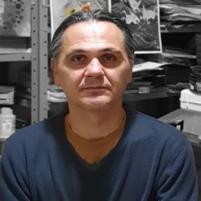 Nasceu em 1974 em Campo Mourão, PR e atualmente vive e trabalha em Curitiba. Graduado em Educação Artística – habilitação em Artes Plásticas – pela Faculdade de Artes do Paraná (FAP/1999-UNESPAR). Foi um dos artistas selecionados na 1ª edição do Programa Bolsa Produção da Fundação Cultural de Curitiba (2006/07). Seus trabalhos elaboram questões relacionadas à imagem, com extensões no desenho, na gravura em metal, na serigrafia, na fotografia e em publicações.