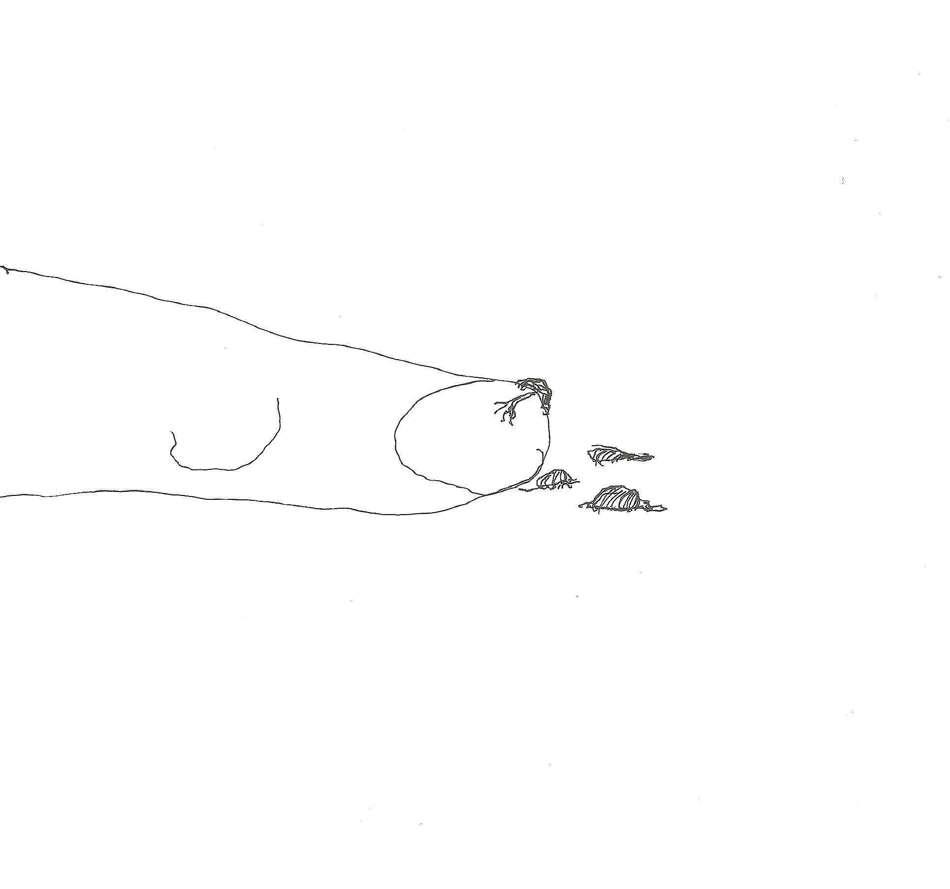 Foi aos poucos se tornando um homem permanecido. Lançado à terra e nela se perdendo, se misturando sem poder deter esse movimento. Lançou ali suas sementes, seus resíduos, toda sua sujeira e pureza largada em um delírio. Não tinha piedade, apenas um corpo nu que sofre. Não tinha a menor piedade, curva-se por medo. Puro medo do absoluto, medo de olhar e não reconhecer mais nada.